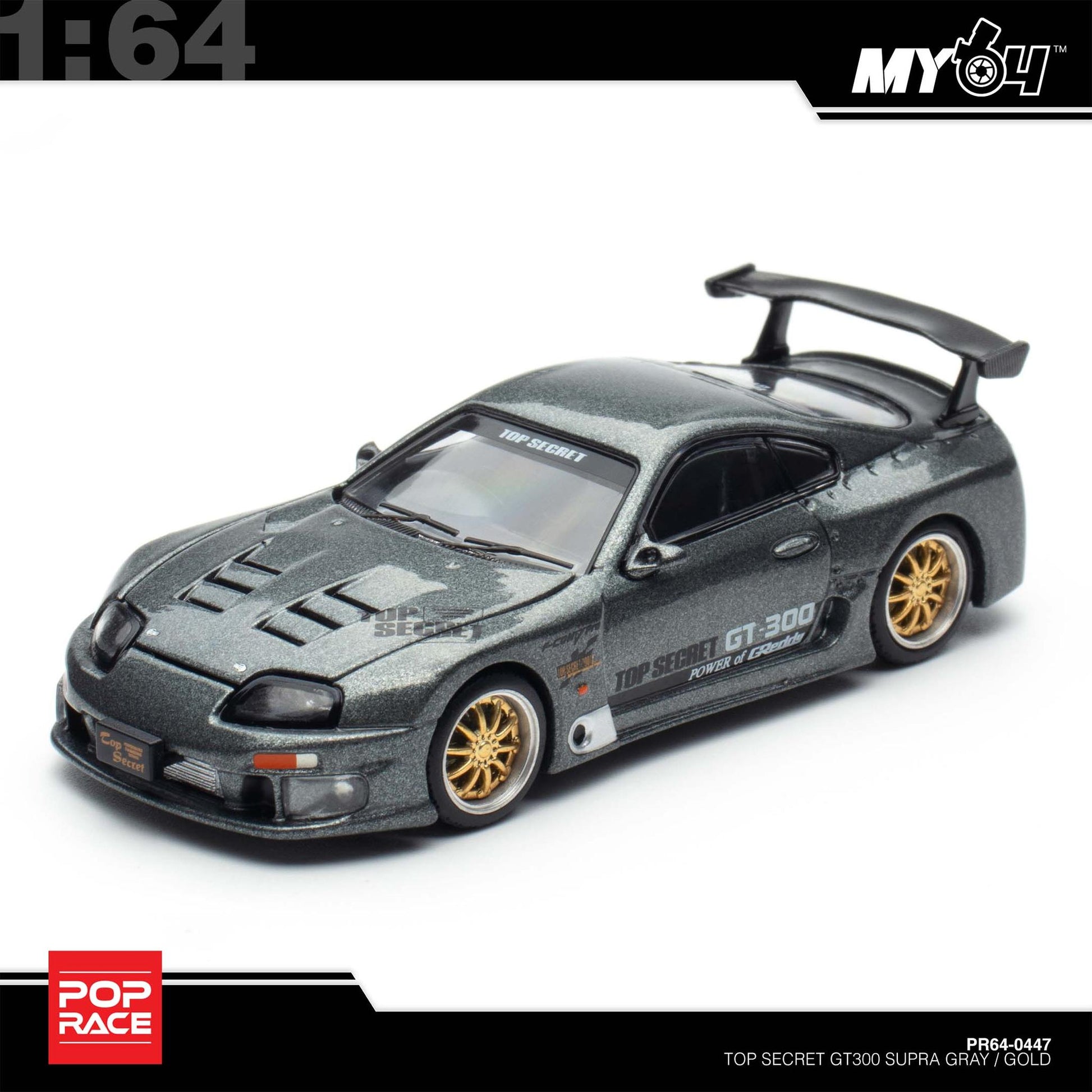 [Pop Race] 1:64 Top Secret GT300 Supra - Grey (PDX25) + FOC V8 Drift (Hakosuka) - Metallic Silver
